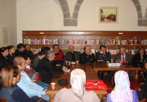 ERZURUM (İHA) - Osmanlı İmparatorluğu tarafından 1915 yılında uygulanan sevk ve iskân kanununun 100. yılı münasebetiyle Ermeni Diasporası tarafından 2015 yılı için hazırlanan eylem plânlarına dikkat çekmek, bu konuda bir direnç oluşturmak ve kamuoyunu bilgilendirmek düşüncesiyle Erzurum Kalkınma Vakfı tarafından Âşık Emrah Kütüphanesi’nde bir sohbet toplantısı yapıldı.