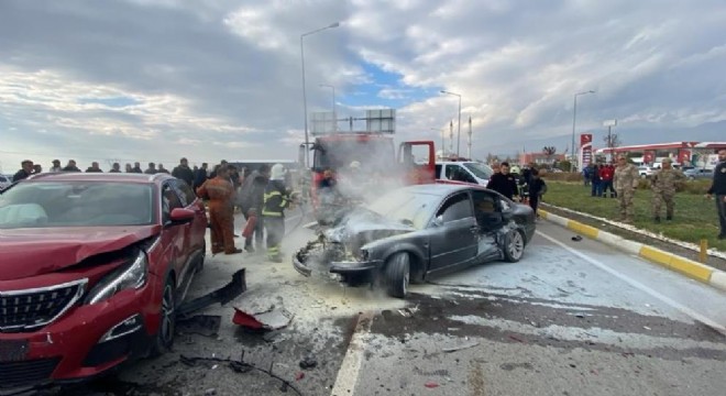 Erzincan'da 5 aracın karıştığı zincirleme trafik kazasında bir araç alev aldı. Kazada 6 kişi yaralandı.