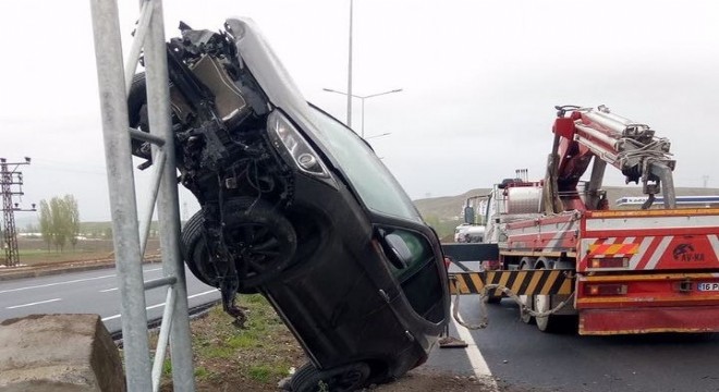 Erzurum’un Horasan İlçesinde sürücüsünün direksiyon hâkimiyetini kaybetmesi üzerine yolda takla atan İran plakalı otomobil direğe çıktı. Kazada 2 kişi yaralandı.