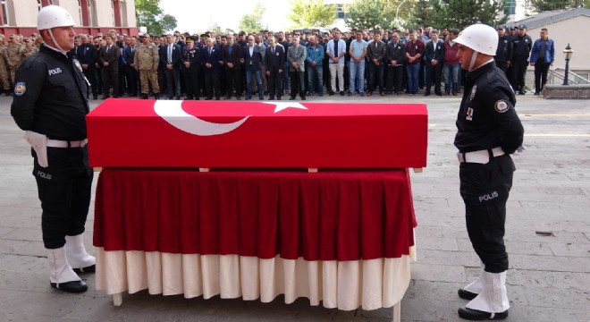 Görev başında kalp krizi geçiren polis memuru için Erzurum İl Emniyet Müdürlüğünde tören düzenlendi.