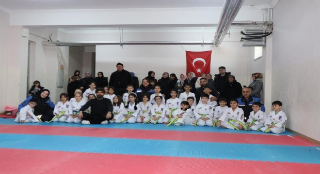 Erzurum’da tekvando kursunu başarı ile bitiren öğrencilerin kuşaklarını polisler bağladı.