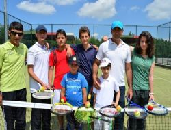 ERZURUM (İHA) - Gençlik ve Spor Bakanlığı ile Spor Genel Müdürlüğü’nün desteklediği projeler ve açtığı yaz spor okulları sayesinde sporda ve sporcu sayısında büyük bir patlama yaşanıyor. Tenis İl Temsilcisi Alpaslan Tozoğlu ile antrenörler Vahdet Alaeddinoğlu, Yıldırım Gündoğdu, Ömer Said Alaeddinoğlu ve Yücel Aksoy nezaretinde çalışmalarını sürdüren tenisçileri zorlu bir maraton bekliyor. Ağrı’da düzenlenecek olan 08-10 yaş grubu gelişim kampına Erzurum’dan 3 bayan üç erkek olmak üzere toplam altı sporcu tenis gelişim kampına katılacak. Ayrıca Erzurumlu antrenörlerde gelişim seminerine davet edildi. Erzurum ayrıca 16 yaş Tenis Türkiye Şampiyonasına üç sporcu ile iştirak edecek ve +1 avantaj listesinde yer alacak.