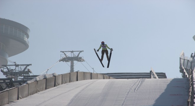 Türkiye’de ilk kez düzenlenen Okullar Arası Kayakla Atlama Yarışmasında minik sporcular yarıştı.