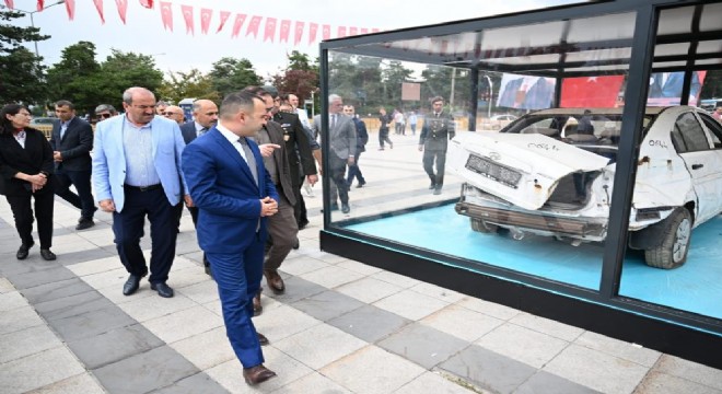 Erzurum’da 15 Temmuz Demokrasi ve Milli Birlik Günü vesilesiyle açılan ateş sonucu hurdaya dönen bir araç sergilendi.