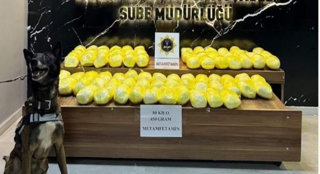 Erzurum Emniyet Müdürlüğü Narkotik Suçlarla Mücadele Şube Müdürlüğü görevlilerince kent genelinde uyuşturucu madde konularına yönelik Narkotik Madde Arama Köpeği Magnum ile yapılan kontroller neticesinde; 80 kilo 450 gram metamfetamin ele geçirildi.