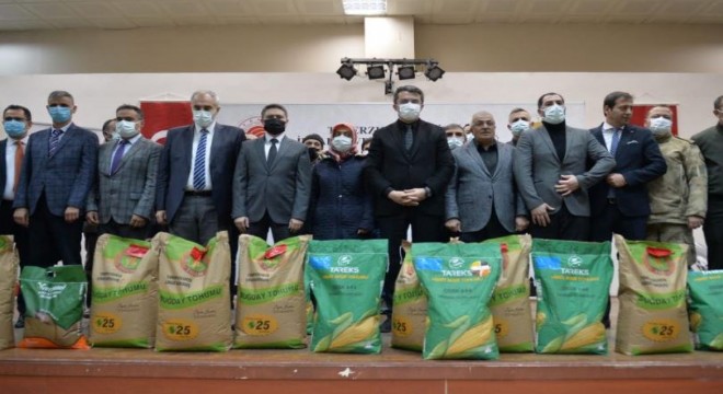 Konuşmalardan sonra buğday tohumu desteği alan çiftçilere tohumlar teslim edilerek, hatıra fotoğrafı çekildi.