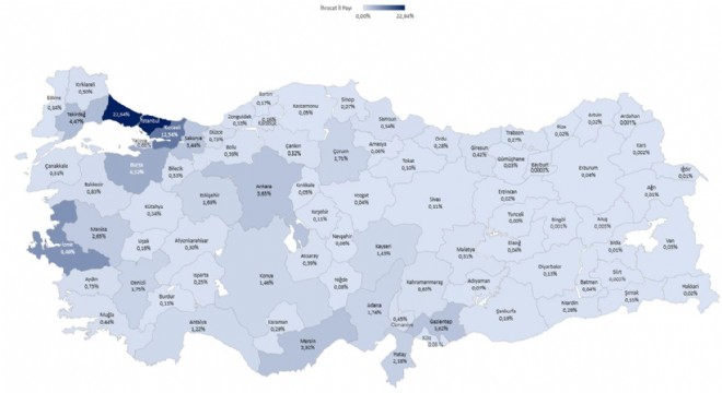 Ekonomik faaliyetlere göre ihracatta, 2025 Ocak ayında imalat sanayinin payı yüzde 93,4, tarım, ormancılık ve balıkçılık sektörünün payı yüzde 4,5, madencilik ve taşocakçılığı sektörünün payı yüzde 1,5 oldu.