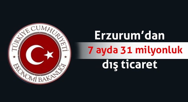 Ekonomi Bakanlığı 2016 Ocak-Temmuz dönemi dış ticaret verilerini paylaştı. Erzurum’da 84 firma tarafından 10.2 milyon dolarlık ihracat, 20.7 milyon dolarlık da ithalat olmak üzere 7 ayda 30.9 milyon dolarlık dış ticaret gerçekleşti.