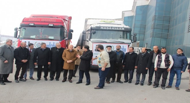 Erzurum Sivil Toplum Platformunun ve Büyükşehir Belediyesinin desteğiyle Suriye’de ki mültecilere kışlık giyecek, un, battaniye, ilaç, yiyecek, yatak gibi yardım malzemelerinin yüklendiği 2 tır, yola çıktı.
