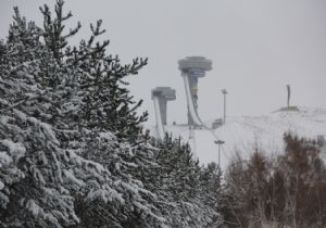 Palandöken’de snowtrack araçlarıyla karla mücadele çalışması yapılırken, ...