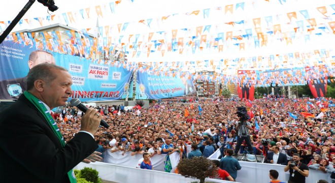 “Bir tarafta durdurmaktan, kapatmaktan, çürümeye terk etmekten bahseden bir yıkım ekibi var. Diğer tarafta Türkiye’yi yeni projeler, eserlerle şahlandırmanın sevdasını taşıyan AK Parti var. Bir tarafta bölücü örgütün siyasi uzantılarına vagon olan aday var diğer tarafta terörün belini kıran irade var. Bu kardeşiniz Rize’nin bir evladı olarak terörün belini kahraman ordusuyla, polisiyle, jandarmasıyla ve güvenlik güçleriyle beraber kırıyor. Afrin kahramanlarına dil uzatan pespaye bir anlayış var. Diğer tarafta mücadelemizi yeni zaferlere taşımaya çalışan kararlı bir duruş var. Bir tarafta korku siyaseti var diğer tarafta hizmet siyaseti var. Bir tarafta faşist CHP zihniyetini diriltmeye çalışanlar var diğer tarafta hak, adalet ve özgürlük diyen bir anlayış var. Bir tarafta karanlık var diğer tarafta AK Parti’nin aydınlığı var. Bir tarafta Pensilvanya’da kurulan yıkım ittifakı var diğer tarafta 15 Temmuz gecesi meydanlarda kurulan cumhur ittifakı var. 24 Haziran günü milletimiz bu ittifak arasında bir tercihte bulunacak. Ya 3 benzemezin 16 yıllık kazanımlarımızı dinamitlemesine izin vereceğiz ya da ülkemizi tüm alanlarda güçlendirmeye devam edeceğiz. Ben ülkemizin ve milletimizin tercihinin yıkımdan değil inşadan ve ihyadan yana olduğunu görüyoruz. Özellikle Rize’li kardeşlerime güveniyorum. 24 Haziran Türkiye’de yeni bir dönemin ilk adımıdır. 24 Haziran Türk demokrasisinin bayram günü olacaktır. 24 Haziran büyük ve güçlü Türkiye’nin müjdesidir. Sandıkları boş bırakamayız. Tatilin telafisi olur ancak sandığın telafisi olmaz.”