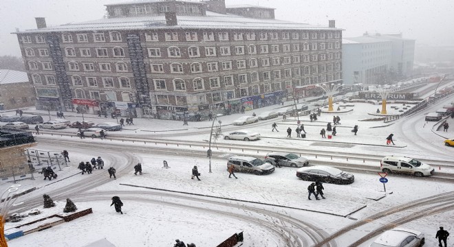 Erzurum’da etkili olan kar yağışı, cadde ve sokakları beyaza bürüdü.