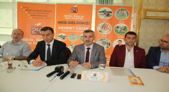 Bu yıl 24 'ncüsü düzenlenecek olan Kültür, Kiraz ve Spor Festivali etkinliğinin basın toplantısı yapıldı. Toplantıya Yeşilyurt Kaymakamı, Ali Sakar Yeşilyurt Belediye Başkanı Hacı Uğur Polat, Başkanı ve kurum müdürleri katıldı. Toplantının açılış konuşmasını yapan Kaymakam Ali Sakar, "24. Kültür, kiraz ve spor festivali için bir araya geldik. Festivalimizde birçok etkinliğimiz olacak. Toplu nikah ve sünnet törenleri ile ata sporlarımızın canlı tutulmasa kadar birçok etkinliğe yine ev sahipliği yapmış olacağız” dedi. Festival Etkinliği hakkında bilgiler veren Belediye Başkanı Mehmet Çınar ise "İlk açılış programlarını 12 Haziran Salı günü, en iyi kiraz ve en iyi kiraz bahçesi yarışması ile başlattık. Ardından 19 Haziran Salı günü Yelşiltepe spor sahasında U 17 kategorisinde futbol turnuvasının startını vermiştik. Yarın ise Kortej yürüyüşü ile festivalimizi başlatmış olacağız. Yarın kapalı çarşı önünden Malatya Park Alış veriş merkezine kadar bir yürüyüş gerçekleştireceğiz. Gerçekleştireceğimiz bu yürüyüşte, cadde boyunca vatandaşlara kiraz ikramımız olacak. Yürüyüşte ayrıca yerel ve ulusal sporcular ile basın temsilcilerimiz olacak. Gerçekleştirilecek olan yürüyüşümüzün hemen ardından, sünnet olan çocuklarımıza sünnet hediyesi vereceğiz. Yine 10 çiftimizin nikahını kıyacağız. 29 Haziran Cuma günü saat 10 da Soykan Parkında fotoğraf sergisi açılışımızı gerçekleştireceğiz. Aynı gün saat 14:00’da Yeşiltepe’de, futbol turnuvasının ödül törenini yapacağız. Saat 16.00’da ise, Atlı cirit müsabakaları yapılacak. Burada atlı cirit takımları dört gruptan oluşacak. Gruplar Erzincan, Sivas, Erzurum ve Malatya takımları olarak yarışacak. 30 Haziran saat 10.30’da Çırmıktı mahallesinde bulunan güreş sahasında açılış ve protokol konuşmaları olacak. 1 Temmuz Pazar günü Güreş müsabakalarımızın final müsabakaları ve ardından ödül törenleri yapılacak. Güreş müsabakalarımıza, Adıyaman, Artvin, Adana, Antalya, Amasya, Ankara başta olmak üzere birçok ilimizden yoğun katılım var. Güreş Alanında Yeşilyurt olarak da iddialıyız. Güreş ağamız Adil Nalbant, güreşte 60 bin TL’ye yakın ödül vereceğini ifade etti. Son olarak evlenen ve sünnet olan kardeşlerimizin mutluluğu adına Malatya Büyükşehir Belediyesi yan tarafında konser etkinliği düzenleyeceğiz ”ifadelerini kullandı. Halkımız birlikteliğine ve berberliği ile bu anlamda ki mutluluğuna destek olacaklarını ifade eden Çınar, "Yeşilyurt belediyesi olarak birçok sloganımız var. Bu sloganlardan en önemlisi de hepimiz için olması ve hepimizin mutluluğu. ‘Yeşilyurtluyum, mutluyum’ sloganından sonra hedefimiz bütün Yeşilyurtluların Mutlu olması. Bunun içinde vatandaşlarımızın birlikte hareket etmeleri, bir olmaları, aynı yöne bakabilmeleri ve kendilerini toplumu ile barışık hissetmeleri önemli. Bu anlamda gerçekleştirilen bu festivalin buna katkıda bulunacağı inancındayız” şeklinde konuştu