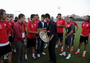 Daha sonra gençler Samsunspor kaptanı Musa Aydın'a Erzurum'u simgeleyen plaket hediye ettiler.