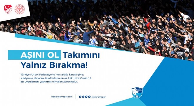 Türkiye Futbol Federasyonu(TFF)nin aldığı karara göre, stadyumlara alınacak taraftarın en az 2 doz covid 19 aşı uygulaması yaptırmasının zorunlu olduğunun hatırlatıldığı mesajda, dadaş taraftar aşı olmaya çağrıldı. Mavi Beyazlı Kulübün mesajında, ‘Mesafemiz dirsek teması değil, #Başbar aralığında olsun’ denildi.