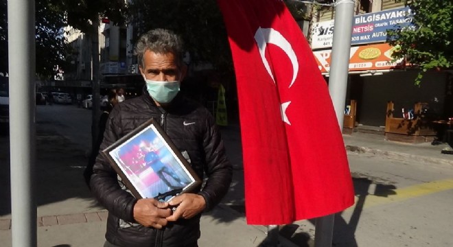 Terör örgütü PKK tarafından kaçırılan oğlu için HDP İzmir İl Başkanlığı önünde evlat nöbeti tutan baba, "Oğlum getirilene kadar burada nöbet tutacağım; asla vazgeçmeyeceğim" dedi.