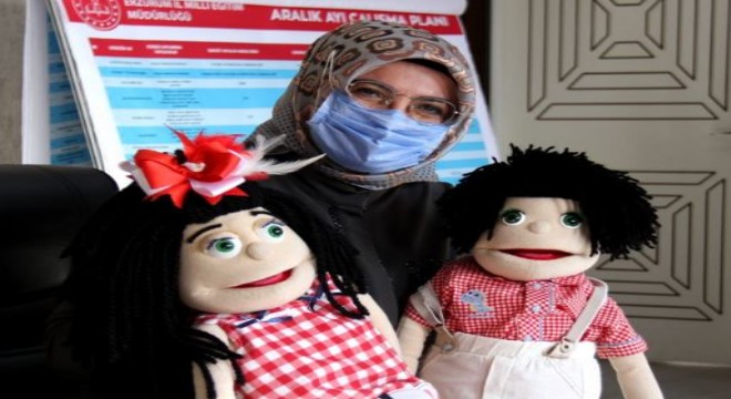 Erzurum’da Okul Öncesi Öğretmeni Vantrolog Betül Ölmez, Covid-19 salgını nedeniyle evde kalan öğrencilere, "Akasya ve Çınar" adlı kuklalarıyla çevrimiçi ders anlatıyor. Çok sayıda öğretmenin de eşlik ettiği çevrimiçi derslerde; Vantrolog Betül Ölmez, kuklaları Akasya ve Çınar’la birlikte öğrencilere keyifli dakikalar yaşatıyor. Kuklaların ders anlatımında kullanılması, çocukların daha keyifli vakit geçirmelerine, öğrendiklerinin daha kalıcı olmasına, derslere daha aktif katılmalarına imkan tanıyor. Derslerde kuklalarıyla hikaye anlatan, müzik eşliğinde oyunlar oynayan Betül Ölmez, çeşitli soru cevaplarla öğrencilere hem eğitici hem de eğlenceli ders imkanı sağlıyor.