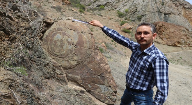 Kayaaltı Mahallesi'nde 1 metre 40 santim uzunluğunda ve 90 santim yüksekliğindeki kaya, görenleri şaşkına çeviriyor. İlçede yaşayan Rüştü Toprak'ın yoldan geçerken tesadüfen gördüğü kayayı salyangoza benzettiğini söyledi. İlgisini çeken kayayı arkadaşlarına da gösterdiğini belirten Toprak, "Cetvelle ölçtüğümüzde taşın 1 metre 40 santim uzunluğunda, 90 santim yüksekliğinde ve 20 santim de kalınlığında olduğunu belirledik. Bunun bir salyangoz fosili olduğunu düşünüyoruz. Taşın biran evvel uzmanlar tarafından incelenmesini istiyoruz. Define avcıları bunu görürse taşı parçalar veya sağını solunu eşip buraları köstebek yuvasına çevirirler" diye konuştu.