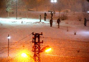 Uzun bir aradan sonra yeniden etkili olan kar yağışını fırsat bilen Erzurumlular gece saatlerinde de kartopu oynamanın keyfini çıkardı.