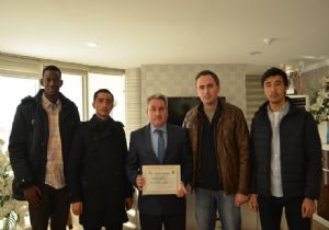 Erzurum Gençlik Hizmetleri ve Spor İl Müdürlüğü bu kez Uluslararası Öğrenci Derneği’ni ağırladı. Dernek başkanı Ertan Aksakal ve yabancı öğrenciler, GHSİM İl Müdürü Fuat Taşkesenligil’e, 8. Uluslararası Öğrenci Buluşması’nda sağladığı destek ve imkanlardan dolayı teşekkür ederek, kendisine katılım belgesi verdi. Oldukça samimi bir ortamda gerçekleşen ziyarete Uluslararası Öğrenci Derneği Başkanı Ertan Aksakal, Senegalli Mamadou Sow, Tacikistanlı Hasan Isoev ve Türkmenistanlı Rahimcan Movliyalov katıldı. Erzurum Gençlik Hizmetleri ve Spor İl Müdürü Fuat Taşkesenligil, ziyaretten duyduğu memmuniyeti dile getirerek, “Cumhurbaşkanımız Sayın Recep Tayyip Erdoğan, Başbakanımız Sayın Ahmet Davutoğlu ile sayın Bakanımız Akif Çağatay Kılıç gençlik projelerine büyük önem vermektedirler. Biz de şehrimizde eğitim gören tüm yerli ve yabancı öğrencilere elimizden geldiği kadar destek olmaya çalışıyoruz” dedi.
