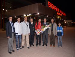 ERZURUM (İHA) - Avrupa üçüncüsü olan Erzurumlu Milli kick boksçu Cebrail Gençoğlu, memleketi Erzurum’da çiçeklerle karşılandı. Polonya’da yapılan Kick Boks Avrupa Şampiyonası’nda Türkiye’yi temsil eden Erzurum Çelebisporlu Cebrail Gençoğlu, Slovakya ve Rus rakibini mağlup ederek, bronz madalya elde etti. Final maçı oynama ve altın madalya kazanma şansını kıl payı kaybeden Erzurumlu kick boksçu Cebrail Gençoğlu, Erzurum Havalimanı’nda çiçeklerle karşılandı. Erzurum Gençlik Hizmetleri ve Spor İl Müdürlüğü Spor Şube Müdürü Fuat Taşkesenligil, Çelebispor Başkanı Resul Çelebi, Kick Boks İl Temsilcisi Ertan Dalbudak, babası Cevayil Gençoğlu ve kick boks antrenörü Metin Seyitoğlu tarafından karşılanan milli sporcu oldukça duygulu anlar yaşadı. Türkiye’ye ve Erzurum’a Avrupa şampiyonasında altın madalya kazandırmayı çok istediğini ancak, bronz madalya aldığını ifade eden Cebrail Gençoğlu, “Hedefim altın madalya kazanmaktı, ama bronz madalya aldım. Artık geriye bakmadan geleceğe bakıp, bundan sonra altın madalya ve Avrupa şampiyonluğu kazanmanın mücadelesini vereceğim” dedi.