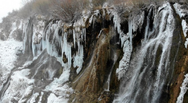Erzincan'da doğa harikası Girlevik Şelalesi her mevsim güzel olsa da, kışın buz tutunca görenlere 'maşallah' dedirtiyor.
