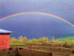 Selim İlçesine bağlı Çıplaklı köyünde kısa süreli etkili olan bahar yağmurunun ardından akşam saatlerinde ortaya çıkan gökkuşağı muhteşem bir görüntü oluşturdu. Gökkuşağı yaz mevsimini özleyen vatandaşlar tarafından ilgiyle izlendi.