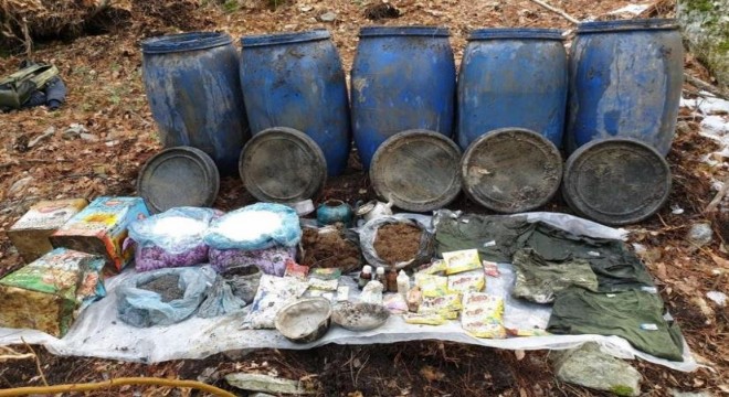 Amanoslar bölgesinde devam eden “Eren Kış-2 Şehit Jandarma Onbaşı Mustafa Baltacı” operasyonu kapsamında bölücü terör örgütü PKK'ya ait sığınakta yaşam malzemeleri ele geçirildi.
