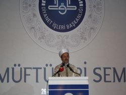 Toplantıda konuşan Diyanet İşleri Başkanı Mehmet Görmez, toplantıya katılanları kardeşler topluluğu olarak nitelendirerek, “Kurumsal kimliğimizden önce Diyanet ailesi ve aidiyetinden de önce burada bulunan topluluk bir kardeşler topluluğu. Ancak o zaman güçlü bağlarla birbirine bağlı bir kardeşler topluluğu olunca ülkemize milletimize alemi İslam’a ve bütün insanlığa hizmet edebiliriz diye düşünüyorum” dedi. İl müftüleri ile her 6 ayda bir toplantı yaptıklarını ancak ilçe müftüleri son olarak 3’lü grup olarak ayrı ayrı yerlerde toplantı yaptıklarını ancak yaptıkları en son toplantının tarihini dahi hatırlayamadığını belirten Başkan Görmez, “Bu gecikmelerimizden dolayı lütfen kusura bakmayın Bu sebeple Starteji Başkanlığımızın yaptırdığı bir araştırmayla başlattım bu toplantıyı. Size kabaca sunduğu koca 2 kitap olarak neredeyse 1 yıldır üzerinde çalışılan bu araştırma pek çok açıdan önem arz ediyor. Benim açımdan şu öneme haiz: biz kendimizi sorgulamış olarak huzurunuza geldik” diye konuştu.