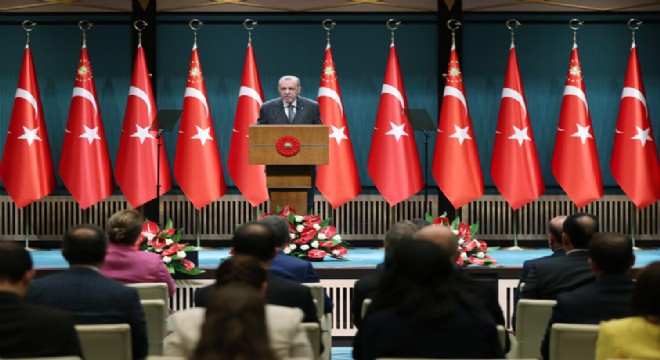 Cumhurbaşkanı Erdoğan, Cumhurbaşkanlığı Kabinesi Toplantısı’nın ardından yaptığı açıklamada, “Dünya, ekonomik krizden savaşlara ve siyasi çalkantılara kadar pek çok sorunla boğuşurken, Türkiye olarak hem içeride hem dışarıda güçlü bir duruş sergiliyoruz. Küresel krizleri önceden görüp gereken tedbirleri alma, mekanizmaları oluşturma, dayanıklılığımızı tahkim konusunda artık herkesin takdir ettiği birikime ve dirayete sahibiz” dedi.