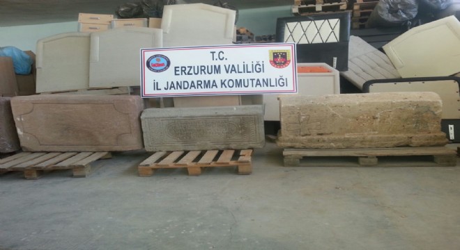 Erzurum’da jandarma ekiplerince düzenlenen operasyonda Bizans dönemine ait 6 adet mezar taşı ve sanduka ele geçirildi.