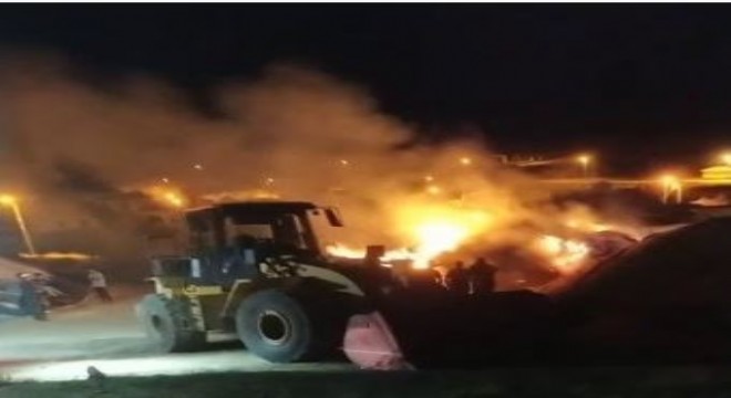 Horasan ilçesinde balya otların alev alması sonucu çok sayıda balya ot yanarak kül oldu.