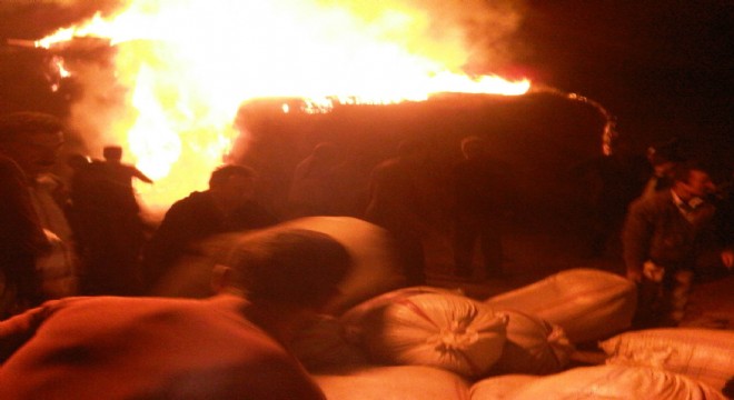 Horasan İlçesine bağlı Iğırbığır Köyünde 25 bin balya ot yanarak kül oldu.