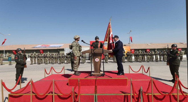 Milli Savunma Bakanı Hulusi Akar, Korgeneral Refik Kurttekin Kışlası’nda düzenlenen törende, Cumhurbaşkanı Recep Tayyip Erdoğan adına 8. Hudut Alay Komutanlığı’na sancak verdi.
