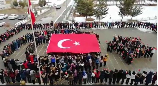 Erzurum’da Nene Hatun Kız Anadolu Lisesi öğrencileri Suriye’nin İdlib kentinden şehit düşen askerleri komando marşı okuyarak andı.