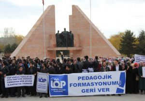 'Formasyonumuzu geri verin' sloganıyla toplanan öğrenciler, Bilim ve Gençlik Anıtı önünde basın açıklaması yaptı. Formasyon hakkının en doğal haklarından biri olduğunu belirten öğrenciler, yetkililere seslerini duyurmaya çalıştı. Öğrenciler adına konuşma yapan bir öğrenci, formasyon sorununun artık son bulmasını ve bu haksızlığa dur demek istediklerini söyledi.