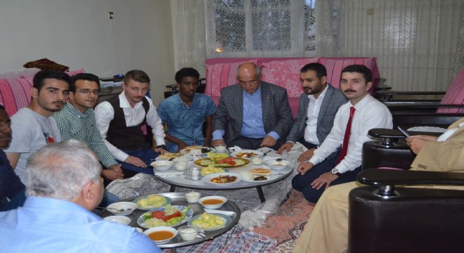 Türkiye Gençlik Vakfı Erzurum İl Temsilciliğinin davetlisi olarak, Erzurumlu bir ailenin evine misafir olan Ak Parti Erzurum Milletvekili Prof. Dr. Mustafa Ilıcalı, Somalili ve Suriyeli öğrencilerle akşam yemeğinde buluştu. TÜGVA Erzurum Yurt Müdürü Abdulkadir Çülük’e davet için teşekkür eden Ilıcalı “Erzurumlu hemşehrilerimiz çok misafir perverdir. Bu değerli ailemiz gençleri akşam yemeğine davet etmiş. Müdürümüzde sağolsun, bana teklifte bulununca büyük bir zevkle katılacağımı söyledim.” dedi.