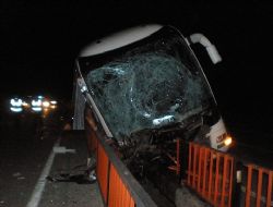 Erzurum’un Pasinler ilçesi girişinde İran otobüsünün bariyerlere çarpması sonucu meydana gelen trafik kazasında 1 kişi öldü 5 kişi yaralandı.