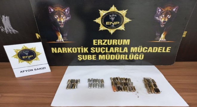 Erzurum polisinin, İran'dan ülkeye giriş yapan yolcu otobüsünde yaptığı kontrolde yabancı uyruklu bir kadın, iç çamaşırı, midesi ve bağırsaklarına gizlediği 63 parça halindeki 716,46 gram uyuşturucuyla yakalandı.