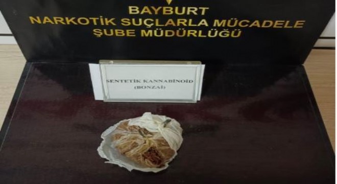 Bayburt Emniyet Müdürlüğü Narkotik Suçlarla Mücadele Şube Müdürlüğü görevlilerince narkotik madde kullanımının, imal ve ticaretinin önlenmesi amacıyla operasyon yapıldı. Ekiplerce, Bayburt-Erzurum yolu uygulama noktasında bir yolcu otobüsü durduruldu, otobüste aramalar yapıldı. Aramada, İran uyruklu şahısın üzerinden çıkan 26,66 gram bonzai maddesine el koyuldu. Şüpheli şahıs hakkında Uyuşturucu Madde Kullanmak suçundan adli işlem yapılarak, Göçmen Kaçakçılığı ve Hudut Kapıları Şube Müdürlüğüne teslim edildi.