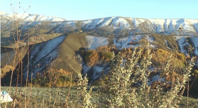 İspir ilçesini Dallıkavak mevkiinde yüksek kesimlerin beyaza büründüğü doğada sonbahar ile birlikte dökülen sarı yapraklar ve yeşil görenleri büyülüyor.