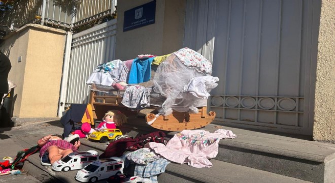 İsrail’in Filistin’de sivil vatandaşlara yönelik düzenlediği saldırıların ardından Türkiye’nin farklı noktalarında protesto gerçekleşmişti. Saldırıların devam etmesi ile protestolar her geçen gün devam ediyor. Gerçekleşen protestoların biri Ankara’nın İsrail Büyükelçiliği önünde düzenlendi. Bir grup vatandaş İsrail Büyükelçiliğinin önüne gelerek bebek beşiği içine üzerlerine kan renginde boya dökülen oyuncak bebekler ve çocuk kıyafetleri bıraktı. Grup yapılan açıklamalarında Gazze için gözyaşının bittiği, boğazın düğümlendiği yer olduğunu belirterek olaysız bir şekilde dağıldı.