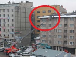 Kar yağışının ardından Erzurum’da soğuk hava etkisini artırırken, saçaklarda oluşan buz kütleleri itfaiye ekiplerince temizlenmeye başlandı.
