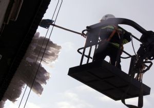 Büyükşehir Belediyesi İtfaiye Daire Başkanlığı bünyesinde oluşturulan Buz Kırma Timi, çatılardan sarkarak tehlike oluşturan buz sarkıtlarını kırıyor.