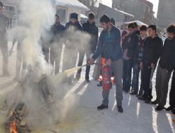 Atatürk Üniversitesi Horasan Meslek Yüksek Öğretim okulu itfaiye bölümü öğrencileri yangın tatbikatı uygulaması yaptılar.
