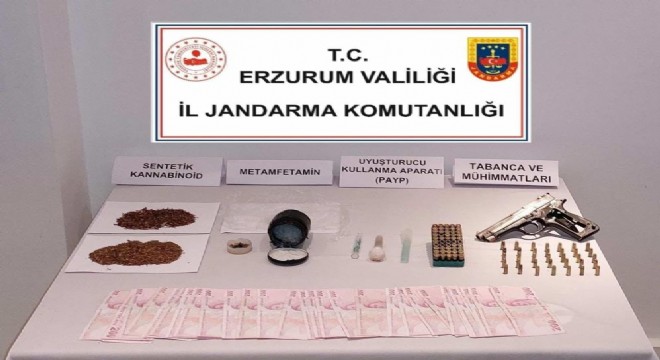 Erzurum İl Jandarma Komutanlığına bağlı Horasan ve Yakutiye İlçe Jandarma Komutanlığınca Horasan ve Yakutiye ilçesinde yapılan operasyonlarda; 428 gram metamfetamin, 18 gram bonzai, 2 adet uyuşturucu madde kullanma aparatı, 1 adet ruhsatsız tabanca ve 95 adet tabanca mermisi ele geçirildi.