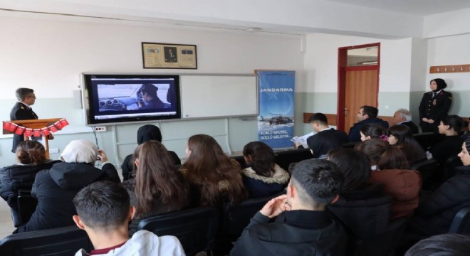 Erzurum İl Jandarma Komutanlığınca öğrencilerin bilgilendirilmesi ve kariyer planlamalarına katkı sağlamak maksadıyla Aşkale Kandilli Borsa İstanbul Lisesi’nde eğitim gören 50 öğrenciye Jandarma Genel Komutanlığının imkan ve kabiliyetlerine yönelik tanıtım faaliyeti icra edildi.