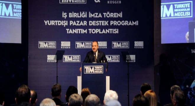 85 bine yakın ihracatçının çatı kuruluşu Türkiye İhracatçılar Meclisi (TİM), KOBİ'leri ihracata yönlendirmek ve uluslararası arenada farkındalık oluşturmak amacıyla KOSGEB işbirliği ile 'Yurtdışı Pazar Destek Programı' başlatıyor. Bu kapsamda TİM'de düzenlenen protokol imza törenine Ticaret Bakanı Ruhsar Pekcan, Sanayi ve Teknoloji Bakanı Mustafa Varank, TİM Başkanı İsmail Gülle, KOSGEB Başkanı Cevahir Uzkurt ve davetliler katıldı. Törende konu ile ilgili bilgiler paylaşıldı.