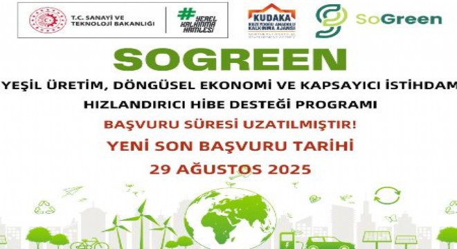 3 Temmuz 2025 tarihinde ilan edilen SoGreen Yeşil Üretim, Döngüsel Ekonomi ve Kapsayıcı İstihdam Hızlandırıcı Hibe Desteği Programı son başvuru tarihi 29 Ağustos 2025 olarak güncellendi.