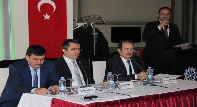 Erzurum Valisi Okay Memiş, ulaşım anlamında sağlanan büyük ivmenin 81 vilayet, her ilin bir turizm destinasyonu olmasını sağladığını kaydederek, “Çünkü herkes her yere kolaylık ve rahatlıkla ulaşılabilir oldu. Sadece eskiden belli bölgelerde Havalimanı gibi birtakım imkanlar varken şimdi her ilde havalimanı var. Her ilde bir üniversitede var, her ilde hemen hemen her şey mevcut. Çok küçük ölçekli iller dahil olmak üzere. Bugün hemen hemen her yerde temel kamu hizmetleri açısından Erzurum nasılsa Bayburt’ta öyle Gümüşhane’de öyle. Eğitim sağlık kültür ve turizm altyapı hizmetleri açısından iller arasında da büyük bir yarış var ve rekabet var. Bu yarış içerisinde hızlı pedal çeviren iller aldı başını gitti, yarış içerisinde olmayan illerde durgunluk içerisinde kaldı. Diğer iller tıpkı diğer ülkeler arasındaki rekabette olduğu gibi ve firmalar arası rekabette olduğu gibi koşan iller olunca normal tempoda yürüyünce de geri kalınıyor. Dolayısıyla şunu kabul etmemiz lazım. Bir yerleşim yeri hangi yer olursa olsun eğer yeterince gelişti ve kalkındıysa o yörede yaşayan insanların, valilerin, vekillerin, belediye başkanların, STK’ların hepsini katkısı vardır. Ama yeterince büyüyüp kalkınamadıysa da aynı oranda sorumlulukları vardır. Erzurum olarak, Erzincan olarak, Bayburt olarak yeterince geliştirmeyi düşünüyorsak bunda herkesin katkısı vardır. Erzurum'un gelişmesinde kalkınmasında 20 günlük sorumluluk da ben de. Göreve başlayalı daha 20 gün oldu. İbni Haldun'un bir sözü var. Coğrafya kaderdir. Biz bir coğrafyada Erzurum, Erzincan, Bayburt ortak kaderi paylaşıyoruz. Yaşadığımız coğrafyada özellikle kamu görevlileri olarak yanınızda olduğumu özellikle ifade etmek isterim. Bütün girişimcilerin yanında olduğumuzu. Bazen bürokrasi, bazen kamu görevlilerinin engel olmaması bile büyük bir nimettir. Biz bazen farkında olarak veya olmayarak engel de olabiliriz. Hem de iyi engel oluruz. Bakanlıkta çalıştığım sırada işyeri açma ve ruhsat belgelerini biz hazırlardık ve o kadar kısalttı ki kendimize göre bir iş yeri açmak isteyen ister bir büfe olsun tek kişi çalışan ister Et Entegre tesisi olsun 300 kişilik bir tesis. Bu tesisin açılması için gerekli olan izinleri Biz çok sadeleştirdik. Ancak buna rağmen ve dedik ki bunun haricinde hiçbir yerel yönetim bilgi belge isteyemez. Ona rağmen her belediye daha sonra temel yönetmelik haricinde yine ekstra bilgiler ve belgeler istedi ve bazı bilgi ve belge isterken de ücrete tabi tuttuğunu dahi gözlemledik. Onun için bu ülkede girişimci olmak sanayici olmak zorlukların farkındayız. İyi niyetli bir şekilde özellikle sanayicilerin yanında olacağımızı belirtmek istiyorum. Cumhurbaşkanımızın, Sanayi Bakanlığı'nın açıkladığı 100 günlük eylem planında da olduğu üzere sanayide üç Y formülü. Yerli, yenilikçi ve yeşil sanayi. Bu bizim önemli kavramımız ve kendi bölgemizde de bulunduğumuz coğrafyanın bir kaynağı. Hayvancılık ve tarım. Hayvancılık neredeyse tarımdan da daha da önce geliyor. 2. geçim kaynağımız turizm. Sanayi çok önemli ve bunu mutlaka desteklenmesi gerekiyor. Erzurum'da 1 Organize Sanayi var. İstihdamı artıracak ve katma değeri yüksek ürünler üretecek bütün kapıları açmamız lazım. Bütün engelleri aşmamız lazım toplantının amacı bu noktadadır. “ diye konuştu.